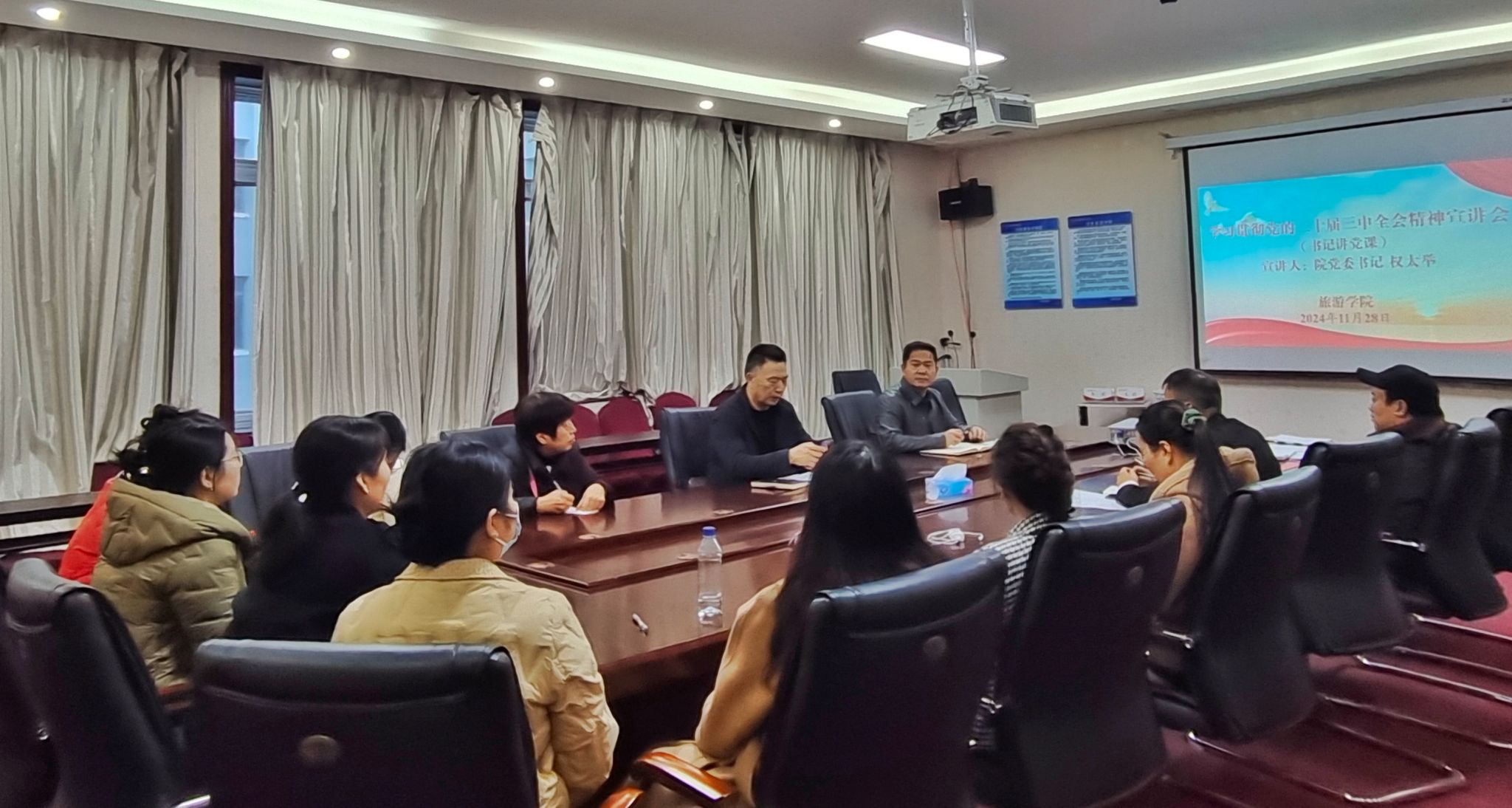 权太举强调,全体教职工深入学习领悟党的二十届三中全会精神,切实把思想和行动统一到全会精神上来,汇聚起进一步全面深化改革的强大合力。要求全体党员干部在全面学习上下功夫、在深化理解上用实劲,结合工作实际、深入学习思考、抓好贯彻落实,在新阶段展现新的担当和作为,努力开创教育高质量发展新局面。