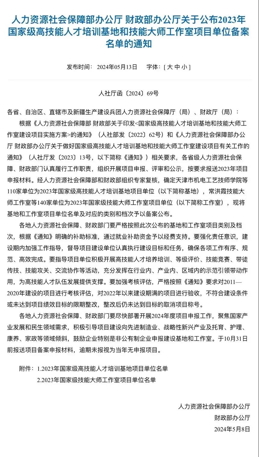 2024年5月13日,国家人力资源社会保障部、财政部发布了《关于公布2023年国家级高技能人才培训基地和技能大师工作室项目单位备案名单的通知》,Beat365官方网站副教授贾红丽凭借其在茶艺教育与文化传播领域的卓越贡献,荣膺国家级技能大师称号。
