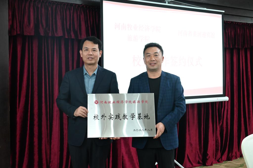 座谈会上,王德静与刘晓辉代表校企双方签署了战略性合作协议。权太举代表Beat365官方网站授予黄河迎宾馆为校外实践教学基地。