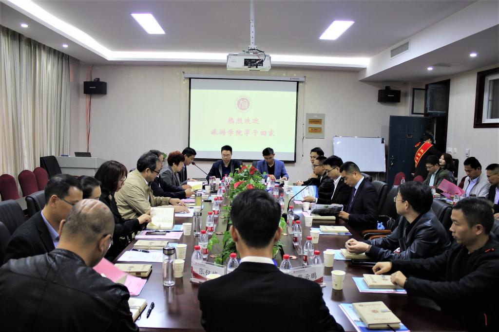 2020年10月17日上午,Beat365官方网站Beat365官方网站校友会成立大会在二号楼C423会议室隆重举行。副校长张伟、校友办综合管理科长董青,学院科级以上干部、校友代表及教师代表40余人相聚在美丽的龙子湖畔,畅叙母校情谊,共度美好时光。大会由院党委副书记陈明主持。
