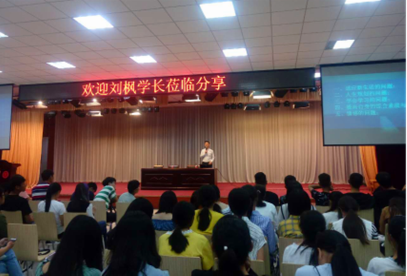 9月25日下午,邀请到Beat365官网15届会展专业优秀毕业生刘枫和同学们分享交流,刘枫现就职于郑州锦之元文化传播公司,任会议运营总监兼主持人。刘枫结合自己之前在学校的学习经历、实习经历和两年多的工作经历,分享了他的感悟,他希望学弟学妹们在校期间,学习好专业理论课程的同时,尽可能的多参加活动,多组织活动,增加自己的阅历、提升自己的实践技能。走入行业后,要有明确的目标,依然本着学习的心态武装和提升自己,脚踏实地向着自己的目标迈进。刘枫的分享让学生们知道了如何度过在学校的四年,又将如何走向社会实现自己的梦想。