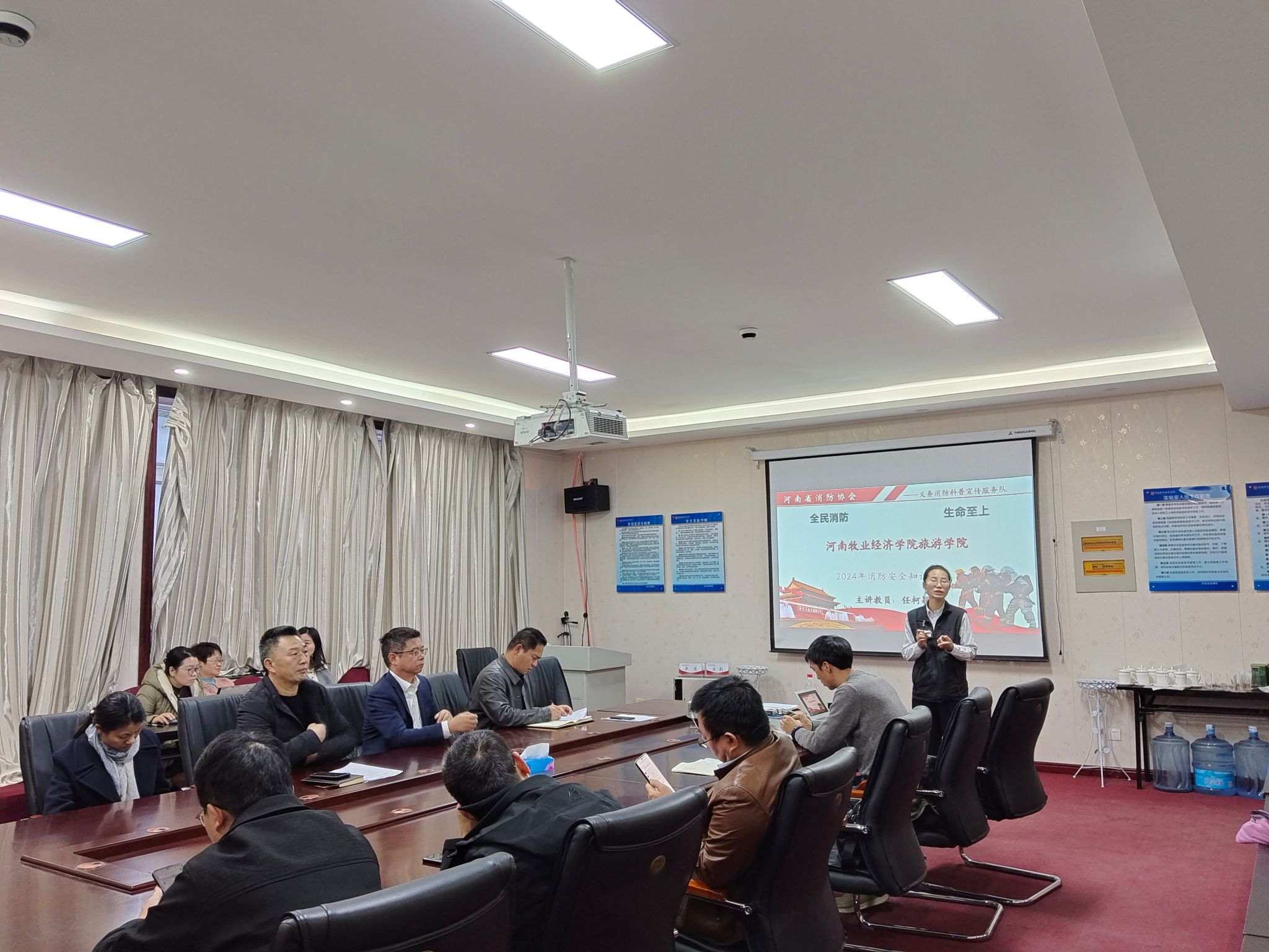 为深入学习贯彻习近平总书记关于安全生产系列重要论述精神和学校要求,进一步加强火灾防控宣传教育工作,不断提升我院教职员工的消防安全意识和火灾防控能力,2024年11月29日下午,Beat365官方网站特邀河南省消防协会义务消防科普宣传服务队任柯颖教员在二号楼C423会议室为Beat365官网带来消防安全培训讲座。本次消防培训会由院党委书记权太举主持,全院教师参加。