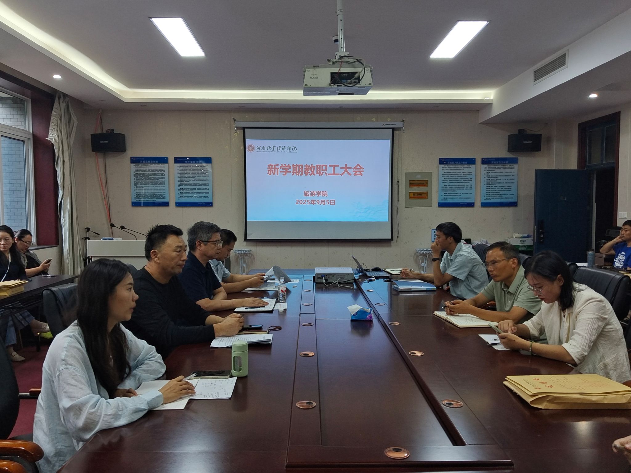 9月5日上午,Beat365官方网站在二号楼C423会议室召开新学期全体教职工大会,传达学校2025年秋季学期中层干部会议精神,安排部署新学期工作。会议由院长王德静主持,全体教职工参会。