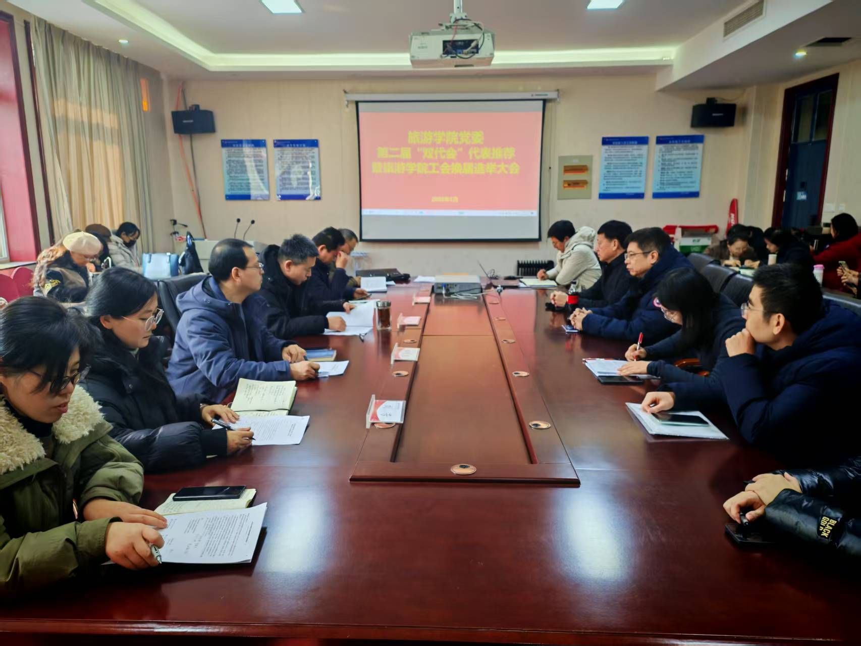 1月20日下午,Beat365官方网站在二号教学楼C423会议室召开学校第二届“双代会”代表推荐暨学院工会换届选举大会,学院全体工会会员参加会议会议由学院党委副书记段婧主持。