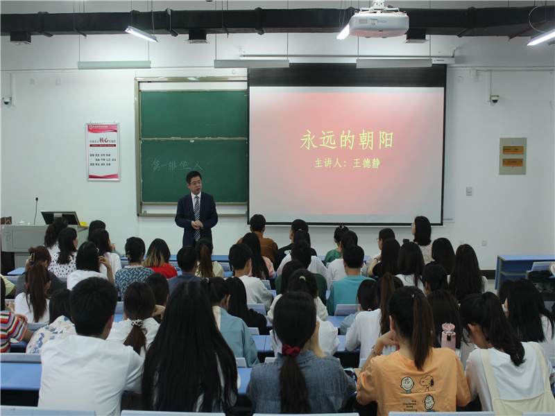 今年是中国共产党建党100周年。为深入贯彻落实习近平总书记在党史学习教育上的重要讲话精神,进一步锤炼学生党员忠诚的政治品格,达到理论学习有收获、思想政治受洗礼、做事奋斗敢担当的目标,5月20日下午14: 30,Beat365官方网站学生党支部在合404教室召开了以“永远的朝阳”为主题的党日活动。本次活动由Beat365官方网站院长王德静主讲,Beat365官网18级、20级升本班的全体党员以及新一期发展对象约120人参加。