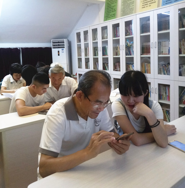 本次教学内容为“如何使用喜马拉雅听书”、“如何使用今日说法”。此次的教学内容摒弃以往的基础应用教学,志愿者们把更富有实效性、娱乐性、多元性的软件带给叔叔阿姨们。教学初始,志愿者们结合事先做好的精美PPT 为叔叔阿姨们细心讲解,而后带着叔叔阿姨们实际操作。很快,叔叔阿姨们便运用自如,一位叔叔甚至直接用“喜马拉雅听书”听起了戏曲。