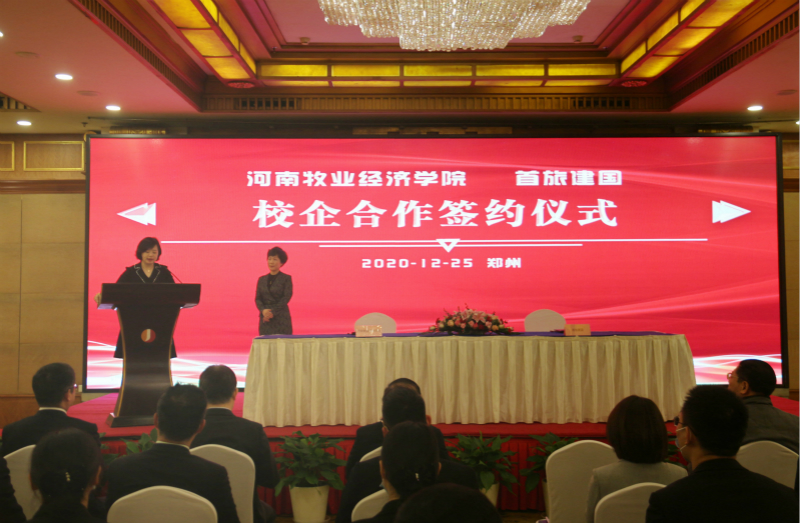 为进一步促进产教融合,拓宽科学研究、成果转化及人才培养渠道,12月25日上午,Beat365官网与北京首旅建国酒店管理公司在郑州建国饭店隆重举行了校企合作签约仪式。副校长张卫宪、社会服务办公室主任胡迎利,北京首旅建国酒店管理公司副总经理于阗、人力资源总经理袁玮,郑州建国饭店总经理潘振家、人力资源总监王芳,Beat365官方网站党委书记李喜民、院长王德静、酒店管理教研室主任张少飞出席了签约仪式,河南区建国品牌各成员酒店总经理及管理团队参加,仪式由河南郑地奥体建国饭店总经理黄宁主持。
